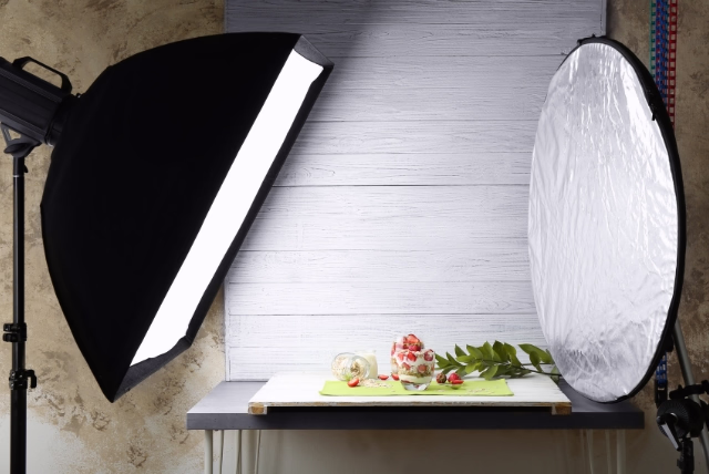 - Side backlight: Kombinasi side light dan backlight, menciptakan outline makanan, menonjolkan tekstur, sekaligus memperkuat warna. Efek tiga dimensi lebih kuat dan warna makanan terlihat lebih transparan serta hidup. Contohnya, tekstur cake yang lembut, warna salmon, atau uap panas ramen terlihat sangat menarik dengan teknik ini.