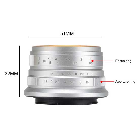 Spesifikasi Lensa 7Artisans 25mm f1.8 for Fujifilm X - Silver