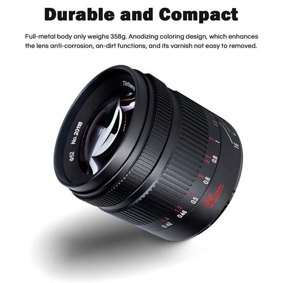 7Artisans 55mm F1.4 II for M 4/3 merupakan Lensa M4/3, Format APS-C: Portrait-length prime dirancang untuk kamera mirrorless M4/3 format APS-C. Lensa begitu Tahan lama, Ringkas & Portabel: Bodi full-metal. Desain Anodizing coloring, yang meningkatkan fungsi anti-korosi, anti-kotor pada lensa, dan pernisnya tidak mudah dilepas. Pemasangan lensa Aviation aluminum & electroplated tungsten steel color, yang tahan terhadap abrasi dan korosi.