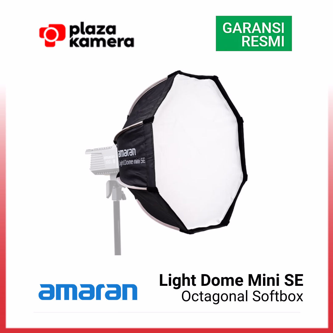 Amaran Light Dome Mini SE adalah softbox berbentuk oktagonal dengan diameter 22.8 inci, dirancang untuk menghasilkan cahaya lembut dan terarah. Berbentuk deep parabolic, softbox ini mampu memaksimalkan output cahaya berkat desain depannya yang 8 sisi serta lapisan interior perak reflektif yang sangat efisien. Dilengkapi kain difusi depan 1.5-stop dan inner baffle, modifier ini membantu melembutkan cahaya point-source dan mendistribusikannya secara merata ke seluruh area softbox.