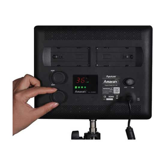 AL-528C dapat bekerja oleh dua cara: Adaptor AC atau 2 baterai Lithium-ion. Kedua metode daya juga dapat digunakan secara bersamaan sehingga Anda dapat mengisi baterai Anda saat menggunakan LED. Baterai Lithium-ion umumnya digunakan (Sony F/FM/QM series) dan mudah ditemukan. Juga dilengkapi dengan 4 lampu LED untuk menunjukkan kekuatan baterai yang tersisa. Ketika lampu hampir mati, LED status berkedip merah.