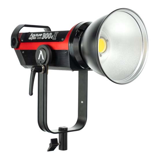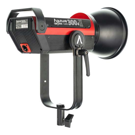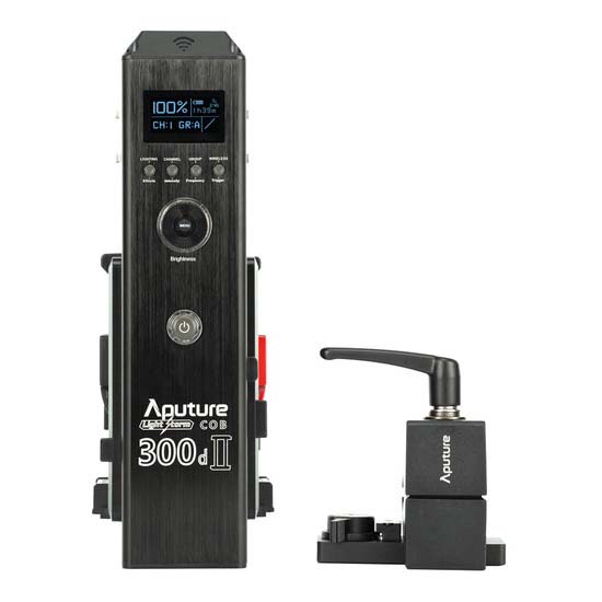 Aputure Light Storm C300D Mark II LED Light dengan V-Mount Battery Plate adalah versi yang disempurnakan dengan daya 20% lebih banyak, fitur yang disempurnakan, dan konektivitas canggih. Aputure menggunakan teknologi Chip on Board (COB) untuk menghasilkan suhu warna 5500K, dengan konsumsi daya hanya 350W, sambil mengeluarkan cahaya 3500 lux dengan reflektor yang efisien pada jarak 3 meter. Selain efisiensi daya, perlengkapan ini juga memiliki peringkat CRI/TLCI 96, yang menunjukkan akurasi dalam rendering warna. Ballast/controller fixture menggunakan 0 hingga 100% peredupan Linear, Logarithmic, Exponential, dan S-Curve dan dipisahkan dari bodi fixture, membuatnya lebih ringan dan mengurangi ukurannya. Basis pemasangan disertakan untuk digunakan dengan penjepit opsional, memungkinkan pemasangan ke light stand untuk mendistribusikan berat.