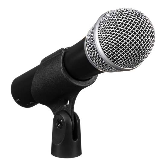 - Threaded mic clip menempel dengan aman ke tripod yang disediakan atau untuk conventional microphone stand