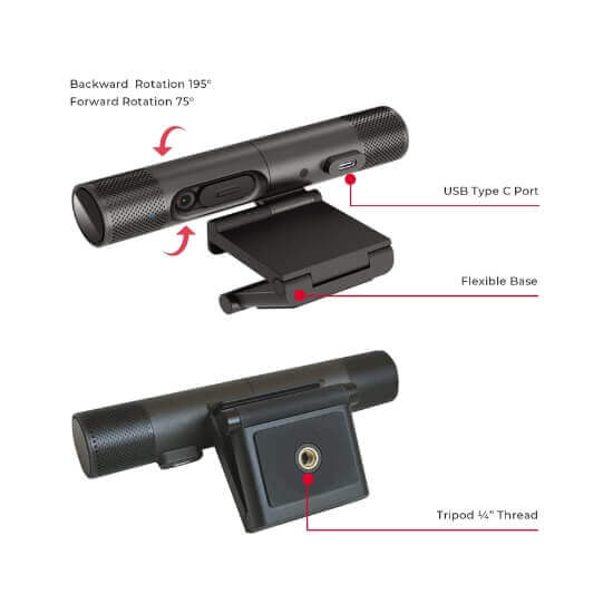 Berkat desainnya yang inovatif, webcam ganda ini ringan dan portabel, memungkinkan Anda untuk dengan mudah membawa dan menggunakannya untuk semua rapat jarak jauh atau kursus online Anda. Sekarang sangat mudah untuk tampil di layar sambil berbagi tampilan dokumen atau objek di atas meja. Ini adalah revolusi dalam kolaborasi dan pembelajaran jarak jauh. Pasang webcam ini ke monitor atau laptop apa pun dengan klip pemasangan universal, atau pasang di tripod (1/4″ thread) untuk menemukan sudut optimal untuk rapat atau kelas Anda. Sangat mudah digunakan, cukup colokkan ke port USB 2.0 komputer Anda dan Anda siap menggunakannya. Semudah itu.