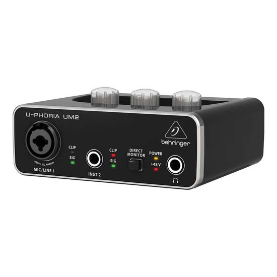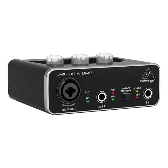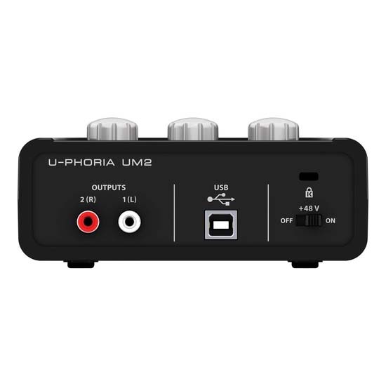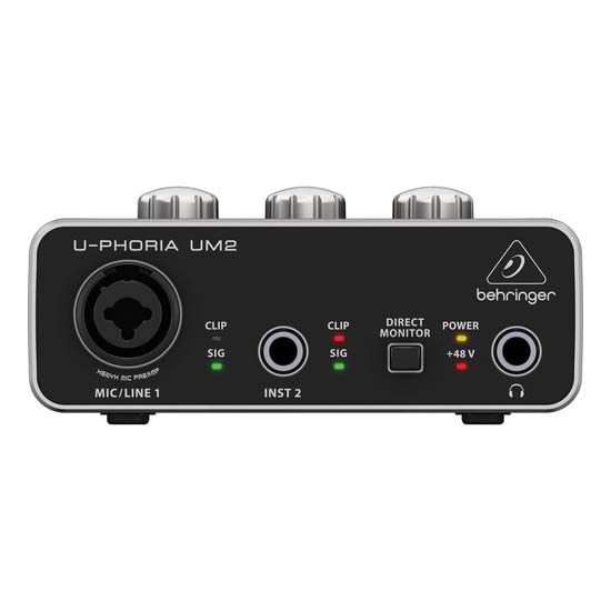 U-PHORIA UM2 2×2 USB Audio Interface dari Behringer adalah 2×2 USB audio interface yang mampu melacak audio Anda dengan laju pengambilan sampel hingga 48 kHz. Ini dibekali fitur satu kombinasi XENYX XLR / TRS mikrofon preamplifier dengan selectable 48V phantom power. Selain itu, UM2 memiliki input instrumen panel depan 1/4″ dengan kontrol level khusus. Output diberikan dalam bentuk output RCA stereo dan jack headphone panel depan 1/4″.