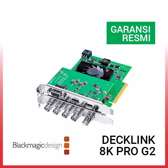 Blackmagic DeckLink 8K Pro G2 adalah PCIe capture dan playback yang mendukung 8K, dilengkapi dengan empat bidirectional 12G-SDI, satu HDMI 2.1 input, dan satu HDMI 2.1 output. Kartu serbaguna ini mendukung semua standar SD, HD, UHD, 4K, dan 8K, menjadikannya solusi PCIe capture dan playback 8K yang ideal untuk produksi film layar lebar. Dengan memanfaatkan DeckLink SDK gratis, kamu bisa mengatur hingga empat video stream dalam arah, format, atau frame rate apa pun hingga DCI 4K 60 fps, memungkinkan capture dan playback multi-channel yang sebenarnya.