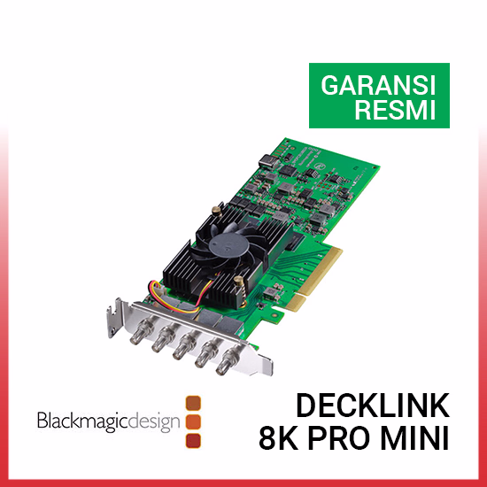 DeckLink 8K Pro Mini adalah kartu capture dan playback digital cinema 8K low-profile berbasis PCI Express Generation 3 dengan 8 lane yang dilengkapi empat koneksi 12G-SDI micro-BNC independen. Koneksi ini mendukung semua standar SD, HD, UHD 4K, DCI 4K, 8K, dan DCI 8K. Kartu ini juga mendukung high frame rate, 12-bit RGB 4:4:4 video, serta full Rec. 2020 color, sehingga sangat ideal untuk workflow generasi terbaru dengan resolusi tinggi dan high dynamic range.