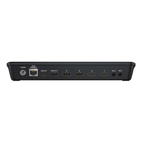 Panel belakang yang sama dengan ATEM Mini dengan tombol tambahan dan fitur perangkat lunak