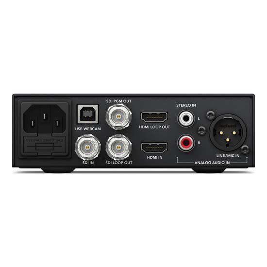 Web Presenter menampilkan input 12G-SDI dan HDMI 2.0 dengan dukungan untuk semua format SD, HD, dan Ultra HD hingga 2160p60. HDMI loop-out memungkinkan Anda mengatur Web Presenter antara komputer Anda dan proyektor video, dan output SDI disertakan untuk master yang merekam output dari switcher. Output program SDI, yang tidak dikonversi menjadi 720p, dapat digunakan untuk merekam master resolusi penuh. Anda juga mendapatkan balanced XLR audio input untuk menghubungkan mikrofon profesional, bersama dengan input RCA HiFi untuk menghubungkan iPod dan sumber audio lainnya sehingga Anda dapat menambahkan musik atau audio komputer ke program Anda.
