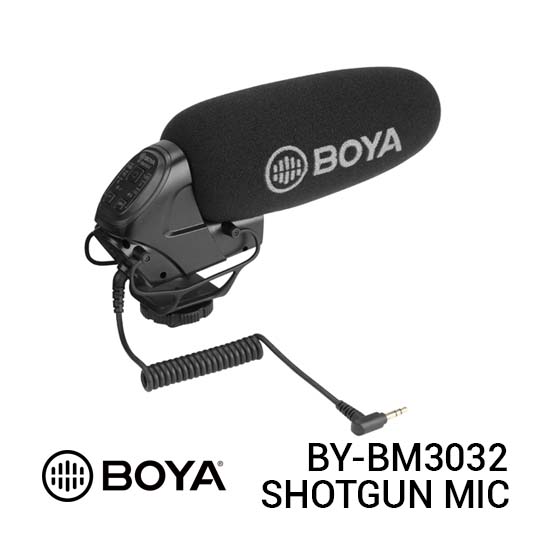 BOYA BY-BM3032 Directional On-camera Microphone merupakan mikrofon shotgun supercardioid on-camera yang menawarkan pengambilan directional audio, gain yang dapat disesuaikan (-10dB, 0, + 20dB), High Pass Filter (0Hz, 75Hz, 150Hz) dan kompatibilitas perangkat yang luas untuk produksi video, vlogging, YouTuber, dan perekam suara.