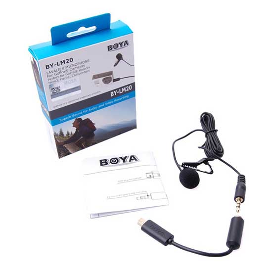 BY-LM20 dari Boya ini begitu sangat ringan, dirancang untuk portabilitas dan kenyamanan yang optimal, guna untuk memberikan hasil suara rekaman yang paling jelas yang dapat Anda temukan. Mikrofon Kondensor Omnidirectional BOYA BY-LM20 Lavalier kompatibel dengan Hero4, HERO3 & HERO3 +. Kinerja mikrofon jauh lebih baik daripada kebanyakan mikrofon yang suda built-in pada kamera anda. Selain itu, mikrofon juga cocok untuk penggunaan interview, podcast, dictation, dan banyak lagi. + Sudah termasuk dengan Windscreen & Lapel-clip.
