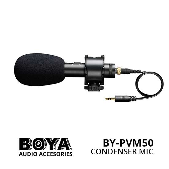 BY-PVM50 dari Boya dilengkapi dengan banyak fitur antara lain: Sirkuit kondensor profesional yang memastikan kualitas suara yang sangat baik, Locked cable dengan 3.5mm stereo mini plug yang didukung oleh baterai LR44 yang sudah disertakan dan Integrated cold-shoe mount dan foam windshield. Selain itu, Mikrofon ini juga memiliki switch ON/OFF untuk pengoperasian yang mudah dan juga sudah termasuk fur windscreen, baterai dan pouch.