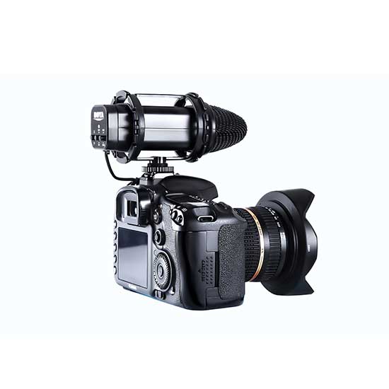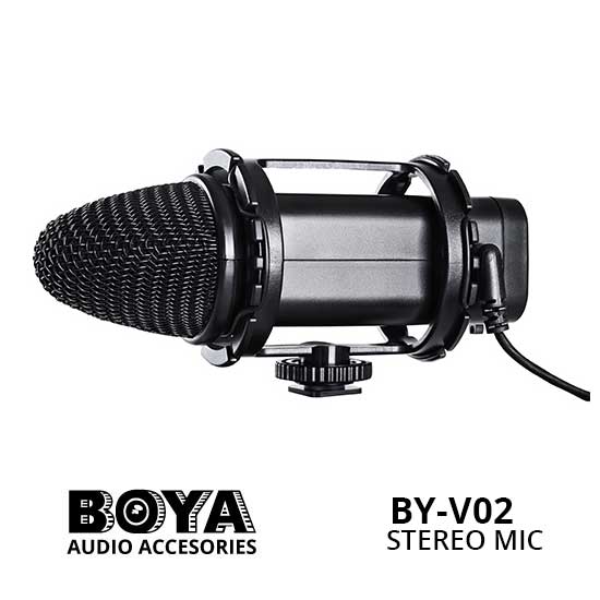 Boya BY-V02 Stereo Condenser Microphone cocok digunakan dengan kamera DSLR, camcorder dan audio recorder anda. BY-V02 ini memiliki fitur hemat biaya yang sangat ideal untuk penggunaan video. Ukuran BY-V02 berukuran 5,94 “(151mm) dan termasuk dengan dead kitten windscreen, kamera hot-shoe mount dan replaceable rubber O-ring yang dapat menggantikan suspensi mikrofon pada shock mount dan melindungi terhadap kebisingan akibat gerakan dan handling ketika mengopersikannya.