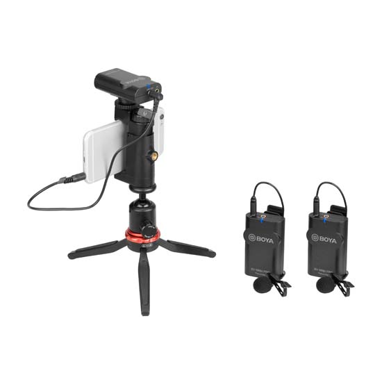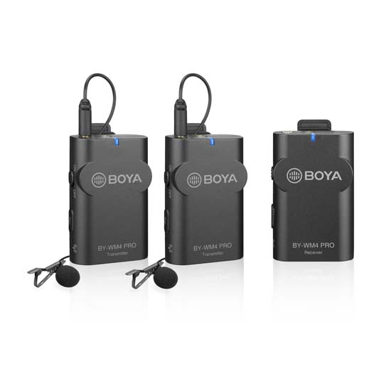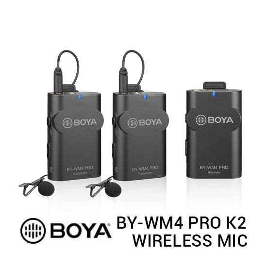 Boya BY-WM4 Pro K2 Wireless Microphone dirancang untuk videografer dan penggemar video, generasi baru wireless microphone 2,4 GHz, dual-Channel untuk menangkap audio dengan dual subject ke smartphone Anda, tablet, kamera DSLR, consumer camcorder, PC dll.