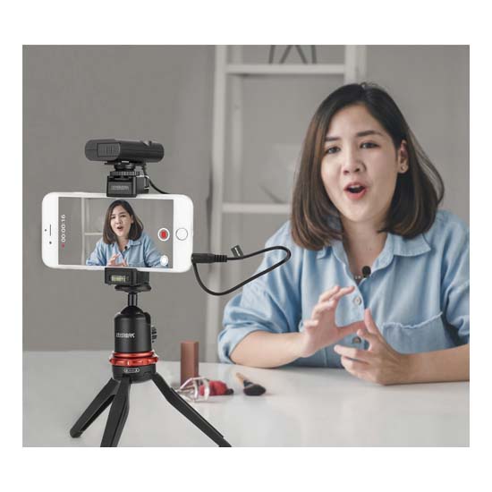 Lavalier/lapel microphone, omnidirectional lavalier microphone, kabel audio TRRS 3.5mm dan kabel audio TRS 3.5mm, yang memberikan pengoperasian langsung out-of-the-box bagi siapa pun, menjadikannya ideal untuk aplikasi video, podcast, dan mobile journalism.