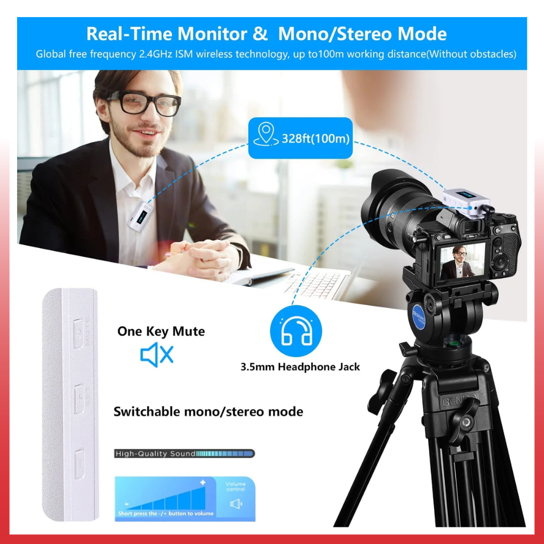 - 2 x Transmitters with Built-In Mic
