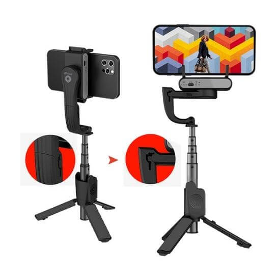 Dengan desainnya yang inovatif, B-Steady Q dapat dilipat, agar lebih mudah dibawa, memperpanjang pegangan sehingga dapat digunakan sebagai tongkat selfie, bersama dengan tripod terintegrasi dan remote nirkabel yang dapat dilepas untuk membuat unit ini serba guna.