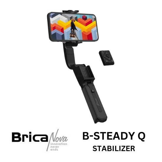 Brica B-Steady Q Stabilizer Gimbal adalah gimbal yang sangat ringan, ukuran ekstra kecil, dapat dilipat dan dengan pegangan yang dapat memanjang. bersama dengan remote control yang dapat dilepas untuk penggunaan yang lebih serbaguna. Fitur: