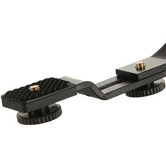 Its designed C-shaped track and the 3 adjustable joins let this bracket can be adjusted to multi-shape for different situation. This bracket let the flash unit can be placed at side or top even taking pictures horizontally or vertically. This function is great for placing the flash unit at the appropriate position for getting a suitable direction of lighting source and prevent or minimize the effect which cause by the long lens is using.