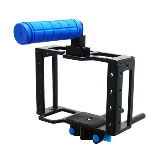 Camera Cage Small adalah cage yang diperuntukkan bagi DSLR yang mempunyai fitur Quick Release, serta bisa disesuaikan tinggi nya. Small Cage ini cocok untuk Canon t2i, t3i, t4i, t5i, 60D dan 550d, serta Nikon D7100, D7000, D5200, D90, D5100, D3200, D3100, Panasonic GH2 and GH3.