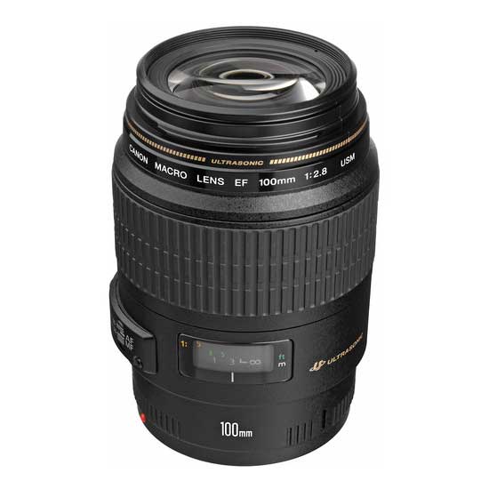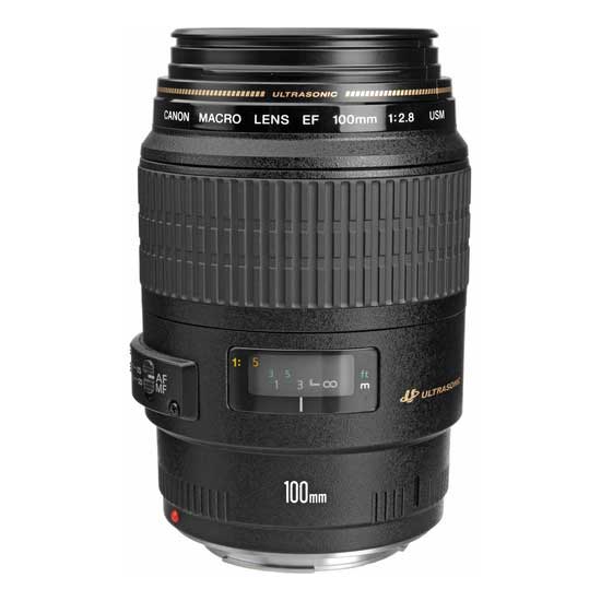 The EF 100mm f/2.8 Macro USM Lens from Canon will focus over the full range from infinity to true life size (1:1 reproduction ratio) macro. Ideal for photographing details and small subject material, it also serves as a very sharp prime telephoto lens for portraiture and other applications. It provides a combination of versatility, image quality and superb handling.