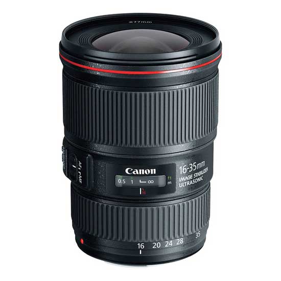The Canon EF 16-35mm f/4L IS USM Lens is a wide-angle zoom lens featuring a constant f/4 maximum aperture to provide consistent performance throughout the zoom range. The optical design incorporates three aspherical elements, including one large-diameter aspherical element, as well as two UD (Ultra-low Dispersion) elements to minimize chromatic aberrations and contribute to high edge-to-edge sharpness and resolution. A fluorine coating has also been applied to the front and rear lens surfaces to reduce flare and ghosting for maintained color neutrality and image contrast.