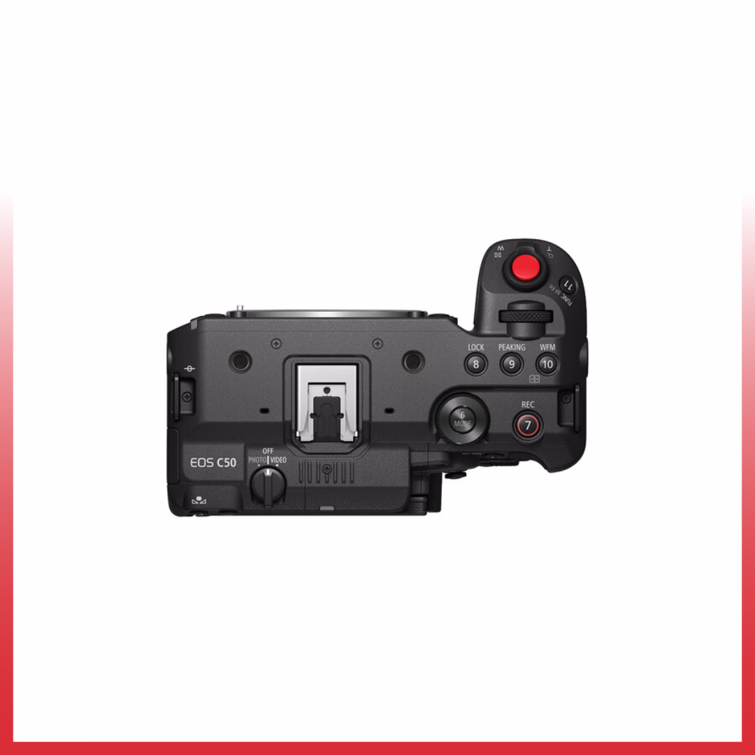 Dilengkapi dengan sensor CMOS full-frame 7K yang baru dikembangkan, Canon EOS C50 Cinema Camera Full Frame adalah kamera serbaguna yang kompak untuk kebutuhan video dan foto Anda. EOS C50 mampu merekam video 3:2 Open Gate pada 4K120 dan video raw hingga 7K60, serta foto statis 32MP dalam mode foto. Pilih antara mode foto dan video yang khusus untuk pengalaman pengambilan gambar hybrid yang intuitif. Fitur canggih tambahan pada C50 meliputi Dual-Pixel CMOS AF II, perekaman 2K crop secara bersamaan, integrasi Frame.io Camera-to-Cloud bawaan, dan dukungan protokol XC untuk kontrol jarak jauh. Pegangan atas yang dapat dilepas yang disertakan dilengkapi dengan dua input XLR 3-pin serta kontrol onboard untuk penyesuaian yang mudah dijangkau.