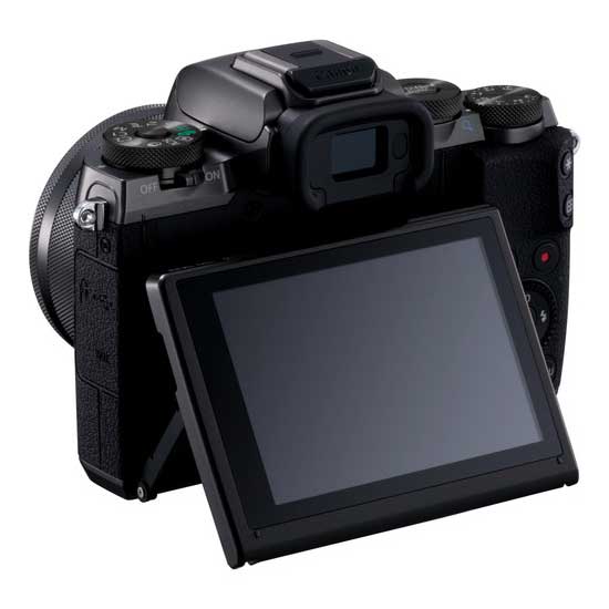 EOS M5 Kit EF-M15-45mm dilengkapi 2.36m-dot electronic viewfinder dengan 3.2″ 1.62m-dot LCD tilting touchscreen. Desain touchscreen memungkinkan anda untuk Touch dan Drag AF untuk intuitive focusing point control. Selain itu, kamera Canon EOS M5 ini juga telah dilengkapi dengan built-in Wi-Fi dan NFC yang dengan cepat dan nyaman dapat di hubungkan dengan smartphone atau tablet untuk sharing gambar secara wireless, atau anda juga dapat menggunakan Bluetooth untuk sharing gambar dan kontrol kamera secara jarak jauh menggunakan perangkat mobile anda.