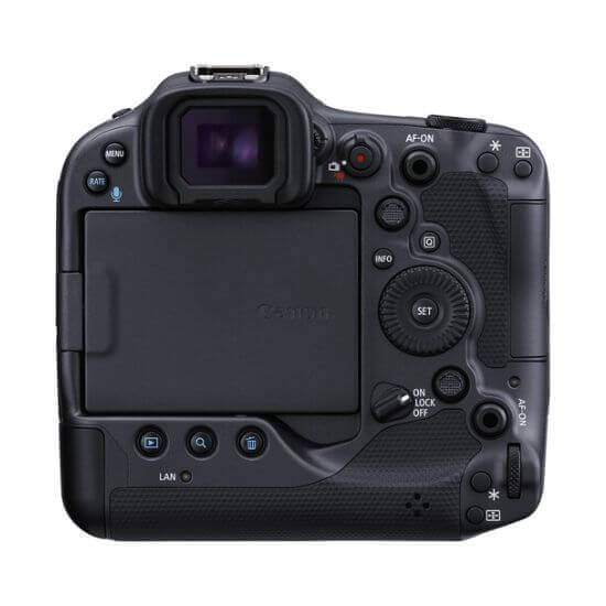 R3 juga merupakan kamera EOS seri R pertama yang dilengkapi pegangan vertikal built-in, sehingga menjadikannya pilihan ergonomis untuk waktu pemotretan yang lama dan untuk beralih secara mulus antara orientasi pemotretan horizontal dan vertikal. Desain bodi yang kokoh juga menggabungkan EVF OLED 5,76m-dot beresolusi tinggi dan LCD layar sentuh vari-angle 3,2″, bersama dengan slot kartu memori ganda, konektivitas nirkabel dan kabel, serta desain Multi-Function Shoe yang diperbarui untuk kompatibilitas aksesori yang diperluas.