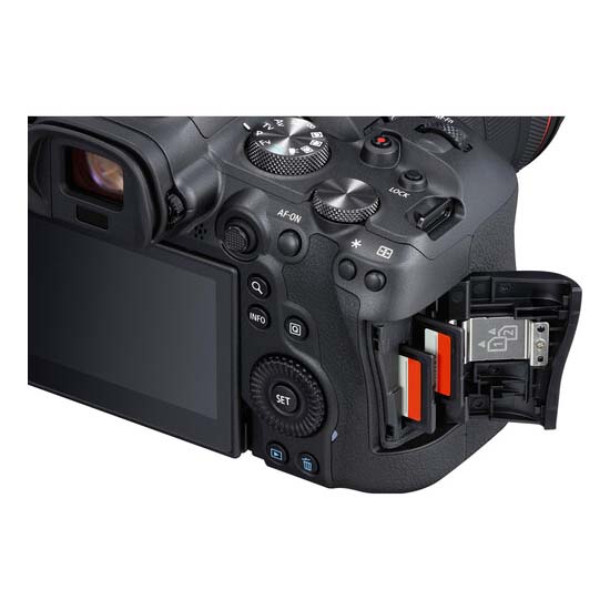 Melengkapi kemampuan pencitraan, R6 menampilkan jendela bidik elektronik 3,69m-dot yang cerah dan detail, dengan kecepatan refresh 120 fps yang tinggi, dan LCD layar sentuh belakang dengan desain vari-angle untuk mengakomodasi kebutuhan vlogging serta manfaat bekerja dari ketinggian dan sudut rendah. Selain itu, slot kartu memori SD UHS-II ganda menawarkan penyimpanan yang fleksibel dan tentu saja ada Bluetooth dan Wi-Fi untuk berbagi nirkabel dan kontrol kamera jarak jauh.