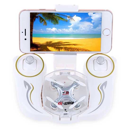 Cheerson CX-10WD-TX 6-Axis FPV Mini Drone yang dilengkapi dengan 0.3MP WIFI FPV SYSTEM yang real-time dengan menghubungkan ke smartphone anda. jadi, gambar dan video yang direkam dapat disimpan dalam ponsel secara langsung, tanpa kartu memori tambahan.