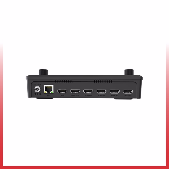 - Kamu bisa memasukkan video melalui empat HDMI port dan mengeluarkannya melalui satu HDMI program output, satu auxiliary output, satu UVC output, serta satu RJ45 LAN port.