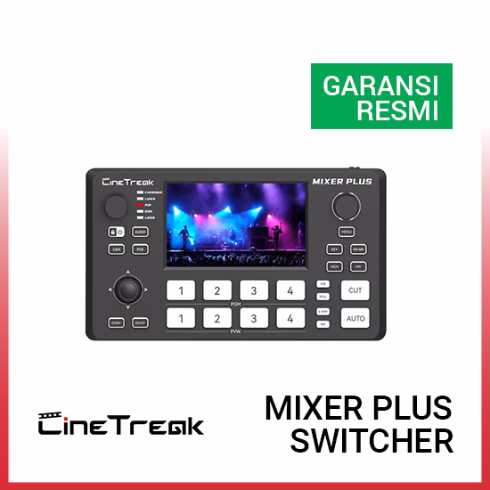 CineTreak Mixer Plus Video Switcher menawarkan kemampuan mixing dan live streaming yang kuat untuk video hingga 1080p60 dengan audio embedded. Switcher ringkas ini dilengkapi empat HDMI input, dua HDMI output, satu LAN port, satu USB-A UVC 3.0 output, dua audio input 3.5mm, serta satu headphone output 3.5mm. Perangkat ini juga memiliki layar LCD 4.5″ dengan fitur multiview, luma dan chroma-keying, berbagai transition effects, serta VISCA control untuk mengoperasikan hingga empat kamera PTZ.
