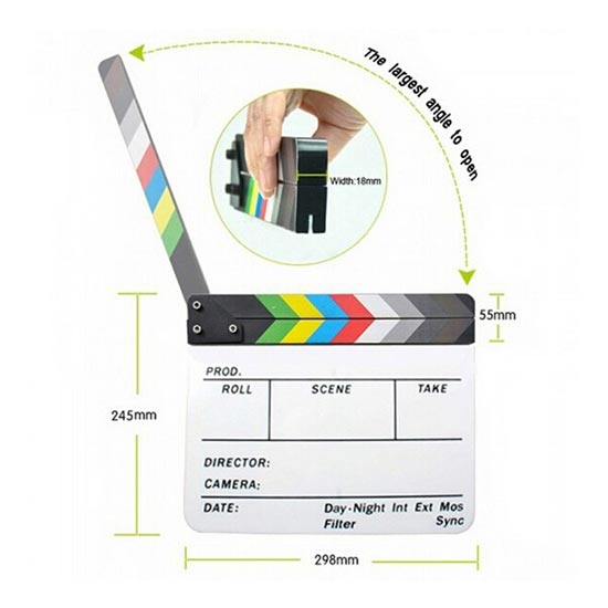Gemar membuat film atau video secara profesional ? Maka, jangan lewatkan alat penting yang satu ini, Clapper Board Colorful Acrylic White. Ini akan membantu Anda dalam menyinkronisasikan antara gambar dan suara agar selaras menjadi sebuah adegan. Dengan material acrylic, membuat suara “clap”, dapat diidentifikasi ketika proses editing gambar dan suara. Selain itu, alat ini dapat membantu Anda dalam memilih dan mendandai adegan tertentu selama proses produksi film. Anda juga dapat menuliskan informasi kolom di papan acrylic ini menggunakan spidol non permanen berulang kali dengan mudah.