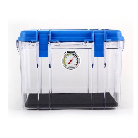 Dry Box ini memiliki volume : 12 Liter dan dimensi: 27cm (W) x 21cm (D) x 20cm (H) dengan bahan plastik abs yang kokoh, tahan benturan. Selain itu, Dry Box juga dilengkapi dengan hygrometer sebagai alat indikator kelembapan dan Box juga mampu memuat satu kamera DSLR dengan lensa terpasang lensa dan aksesoris kecil lainnya.