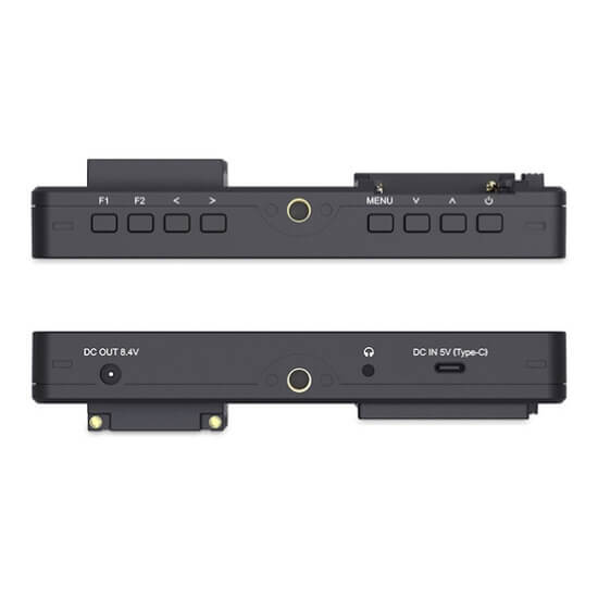 F5 Pro V3 juga dilengkapi dengan braket pemasangan yang diamankan di bagian belakang yang memungkinkan Anda memasang pemancar, konverter, dan perangkat lainnya. Juga disertakan sun hood untuk tampilan yang lebih baik dalam kondisi luar ruangan yang terang.