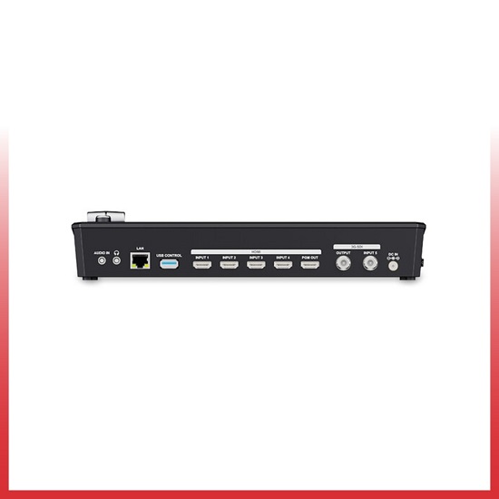 - Semua input bisa dimonitor langsung dari layar TFT warna bawaan, atau kamu bisa output preview dan program lewat port HDMI dan SDI.