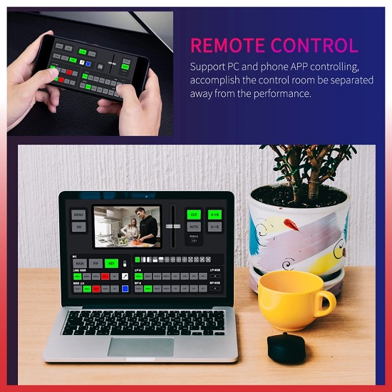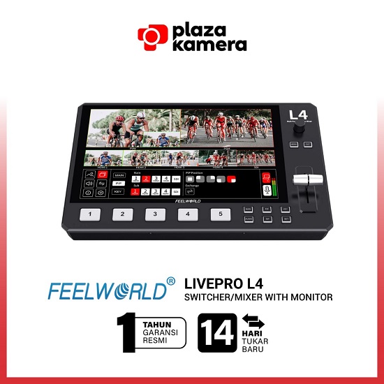 FeelWorld L4 Switcher ini memungkinkan untuk mengatur hingga lima input video, menampilkan output program dan preview melalui HDMI & SDI, serta melakukan live streaming hingga resolusi 1080p60 via USB 3.0 ke komputer menggunakan software streaming pihak ketiga.