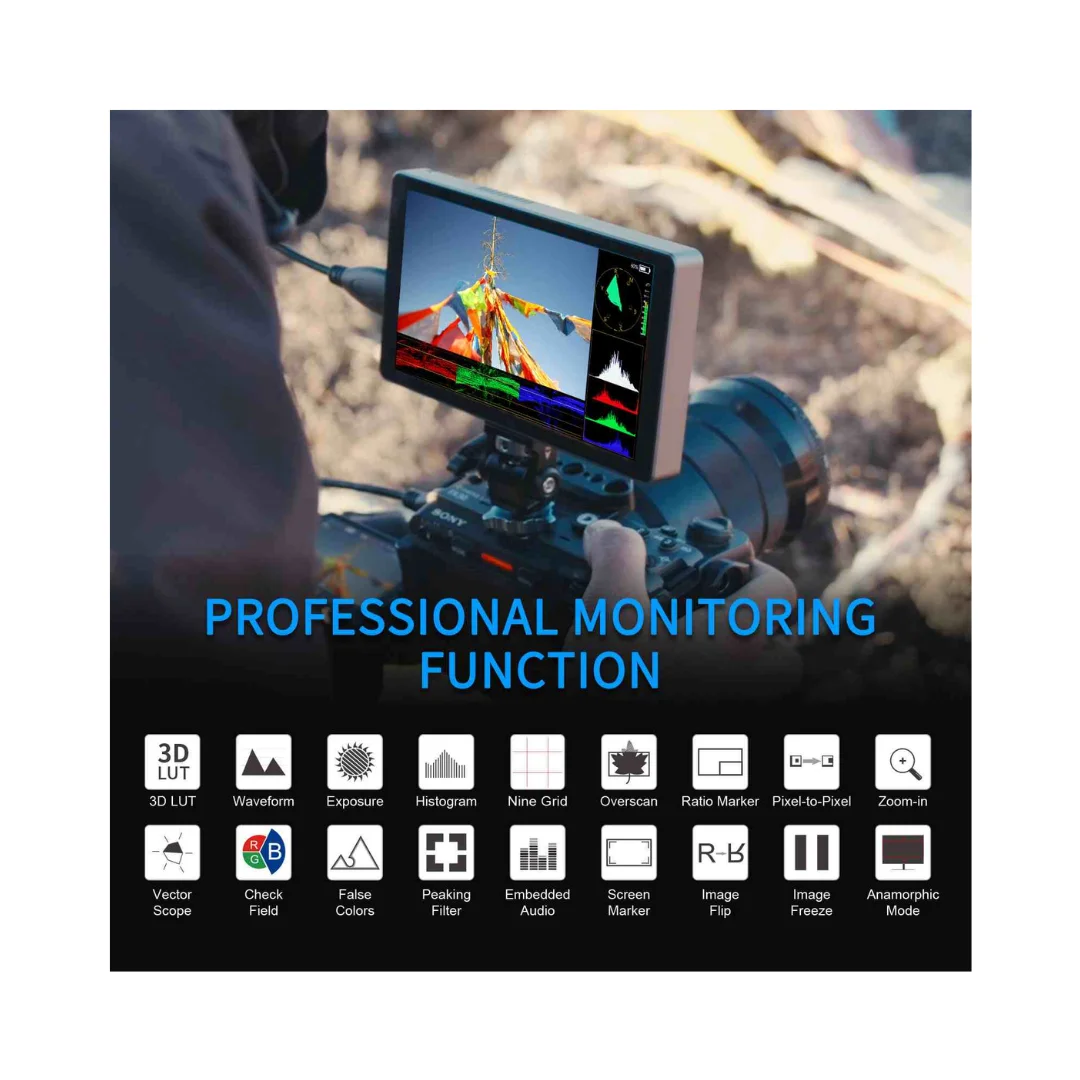 Selain itu, desainnya yang ringan dan compact membuat monitor ini mudah dipasang pada berbagai rig kamera. Pengguna dapat dengan mudah mengintegrasikannya ke dalam setup tanpa menambah beban yang berlebihan. Material yang digunakan juga cukup kokoh sehingga aman digunakan dalam berbagai kebutuhan produksi.