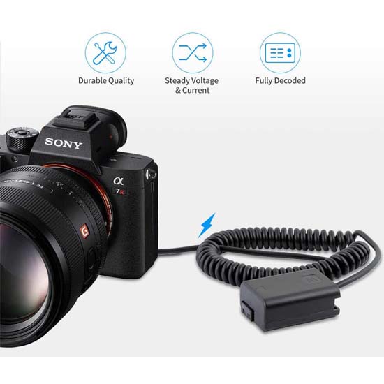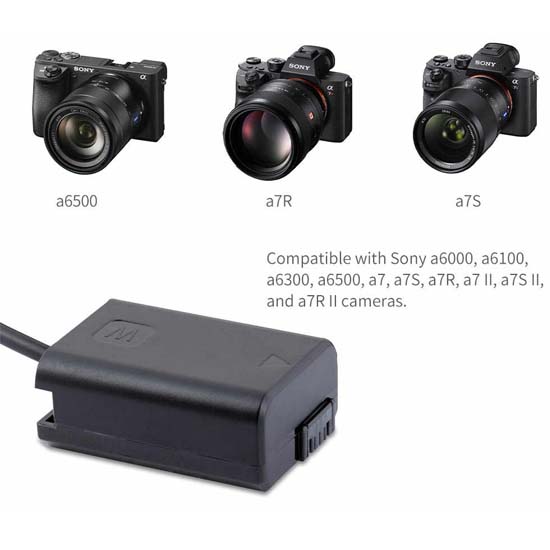 Power Adapter NP-Z100 cocok untuk meningkatkan waktu foto maupun dan kompatibel untuk kamera Sony a6000, a6100, a6300, a6500, A7, A7S, A7R, a7 II, a7S II, dan a7R II.