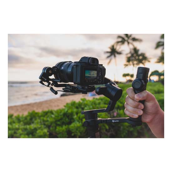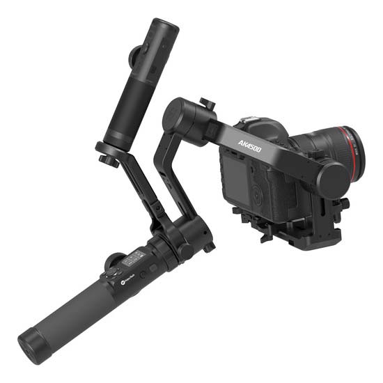 Baseplate kamera gimbal kompatibel dengan Manfrotto atau Arca-Swiss style plate untuk berbagai opsi pemasangan. Extension rod yang disertakan dengan AK4500 dapat dipasang pada bagian bawah pegangan gimbal sehingga Anda dapat memegang gimbal dengan nyaman dengan kedua tangan untuk jenis tembakan tertentu. Atau, Anda dapat menggunakan mini tripod yang disertakan untuk meletakkan gimbal di permukaan yang datar.