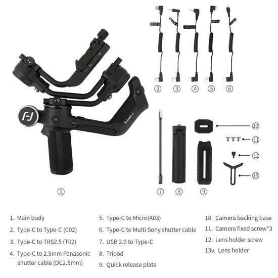 Feiyu Scorp C merupakan senjata pribadi yang dibuat khusus untuk Sony A7. Kompatibel dengan berbagai model mirrorless dan SLR, struktur inovatif hanya untuk pemotretan yang lebih nyaman. Gimbal ini mengambil desain ergonomis dan kokoh yang sama dengan pendahulunya dan menyesuaikan kontrolnya agar dapat diakses melalui aplikasi Bluetooth. Berbagai kamera Sony, Canon, Nikon, Panasonic, FUJIFILM, dan Sigma didukung oleh muatan 5,5 lb gimbal dan kabel konektor kamera yang disertakan. Kontrol tombol intuitif dan aplikasi Bluetooth memungkinkan pengguna untuk menyesuaikan mode follow, beralih antara orientasi pemotretan potret dan lanskap, dan menginisialisasi dan menyeimbangkan gimbal, di antara fungsi-fungsi lainnya.