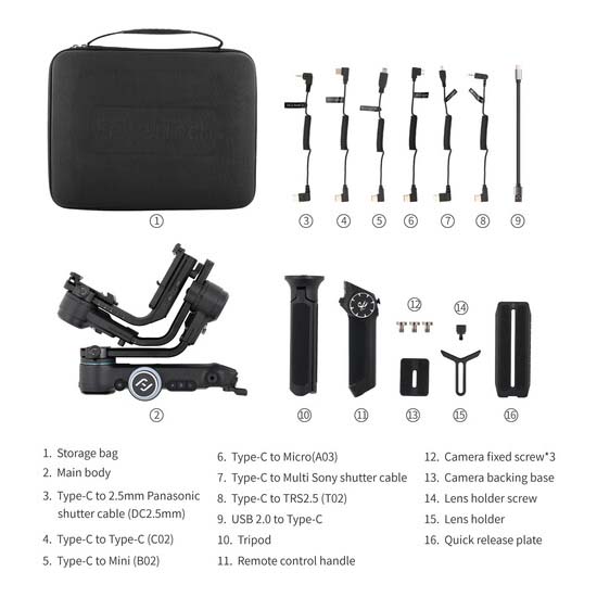 Gimbal ini dirancang untuk bekerja dengan banyak kamera DSLR dan mirrorless terkemuka, termasuk Canon 5D Mark IV dan Sony a7S III. Daftar lengkap kamera yang kompatibel disediakan oleh pabrikan.
