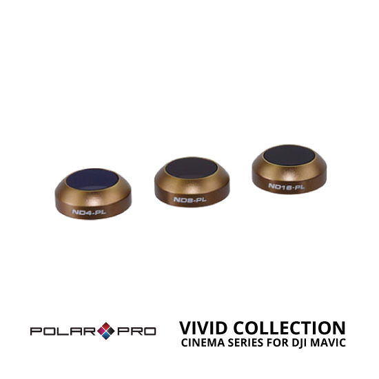 Fiter PolarPro DJI Mavic Cinema Series Vivid Collection ini terdiri dari Filter ND4/PL, ND8/PL, and ND16/PL, untuk mengurangi shutter speed, menghilangkan glare, dan menaikkan color saturation. Tiap-tiap filter ini dibuat dengan PolarPro’s AirFrame Featherlight Design yang berguna untuk pengoperasian gimbal yang lebih smooth.