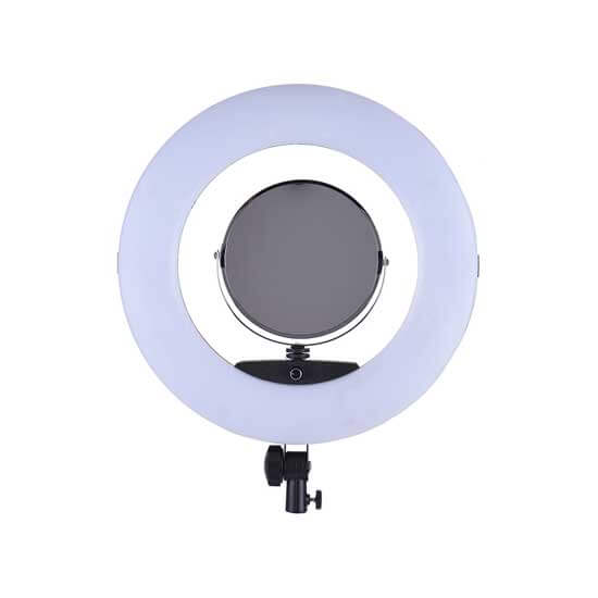 Cermin bisa dipasang ke Ring Light yang sudah dipasangi mount yang sesuai pada hot shoe nya. Cermin ini bisa diputar 360 derajat dan memiliki dua fungsi yaitu cermin standar dan cermin cekung. Bermanfaat untuk melihat hasil make up atau preview sebelum Anda melakukan foto atau selfie.