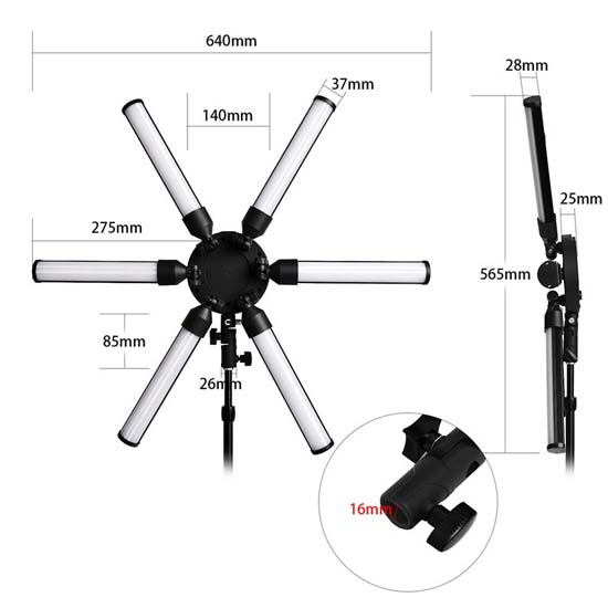 Fotoplus Star Light Mini SL-18M LED merupakan lampu yang cocok untuk fotografi digital, jadi mengambil gambar akan lebih sempurna yaitu dengan cahaya yang terpusat terdiri dari 6 LED tubes. Color temperature dari lampu ini adalah dari 3200K hingga 5600K, dengan stepless dimmable brightness dan CRI tinggi dengan color temperature yang stabil.