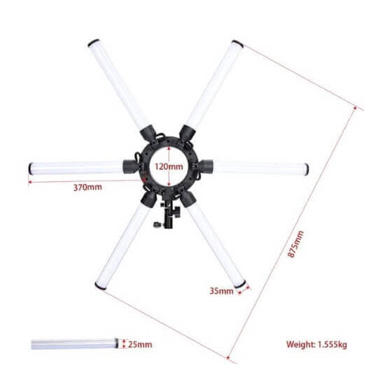| Include | Light Stand, Kabel Power Adapter, Mini Ballhead, Phone Holder, Toolkit (Obeng), Travel Bag |