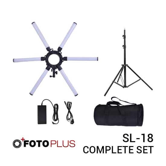 Fotoplus Star Light SL-18 LED Complete Set adalah aksesori lampu fotografi yang membentuk bayangan berbentuk matahari atau bintang pada mata, berbeda dengan Ring Light yang memberikan efek cincin di bola mata. Star Light SL-18 dikendalikan oleh chip mikrokomputer, memiliki tampilan tabung digital. Star Light terdiri dari 6 tabung aluminium daya tinggi, ada 3 color temperature (3200K, 4200K, dan 5600K), suhu warna stabil, CRI tinggi dan masa pakai panjang.