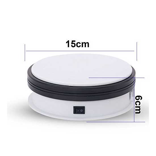 Fotoplus Turntable Rotating Display 15cm banyak digunakan dalam display produk dengan ukuran besar seperti display perhiasan, jam tangan, produk digital, shampoo, glass, bag, Models, Diecast, Perhiasan dan Collectible.
