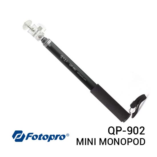 Fotopro Monopod QP-902 Black merupakan Mini monopod atau Tongsis harga murah yang kompatibel untuk action camera maupun smartphone karena dilengkapi dengan phone holder. Tongsis ini cocok dan sangat mempermudah anda dalam mengambil foto selfie, mau selfie sendiri atau dengan teman maupun keluarga akan jadi lebih menarik pastinya. Mini Monopod QP-902 memiliki Panjang minimum : 29 cm, Panjang maksimum : 95 cm, Berat: 125g dan kapasitas Beban maksimum: 500g.